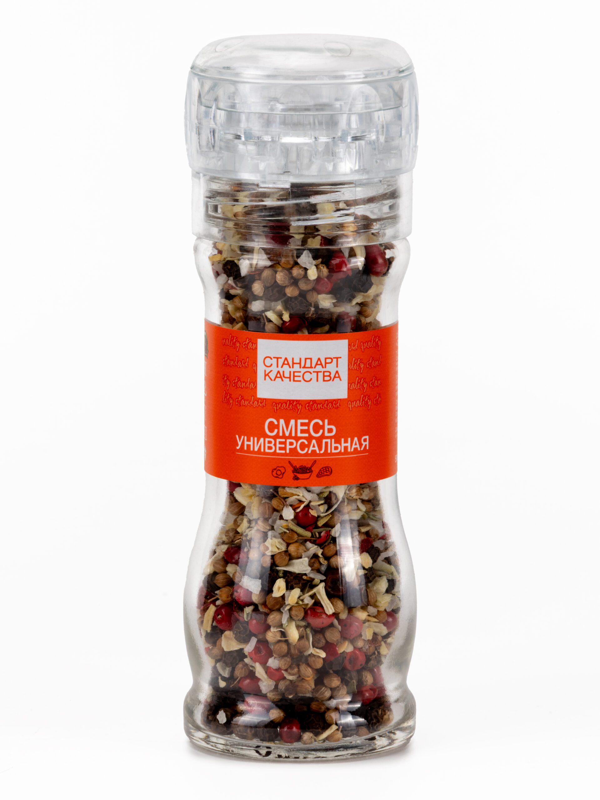 соль морская (35%), перец черный горошком, чеснок, лук, кориандр, перец розовый горошком, розмарин, перец чили, тимьян.